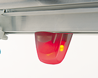 警示燈位于送紗器下方中央可高度辨識位置。斷紗停機時機殼變色。