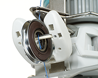 這只封閉式的,抗磨損的儲紗送紗輪在處理多絲纖維紗時有防殘絲積聚功能。